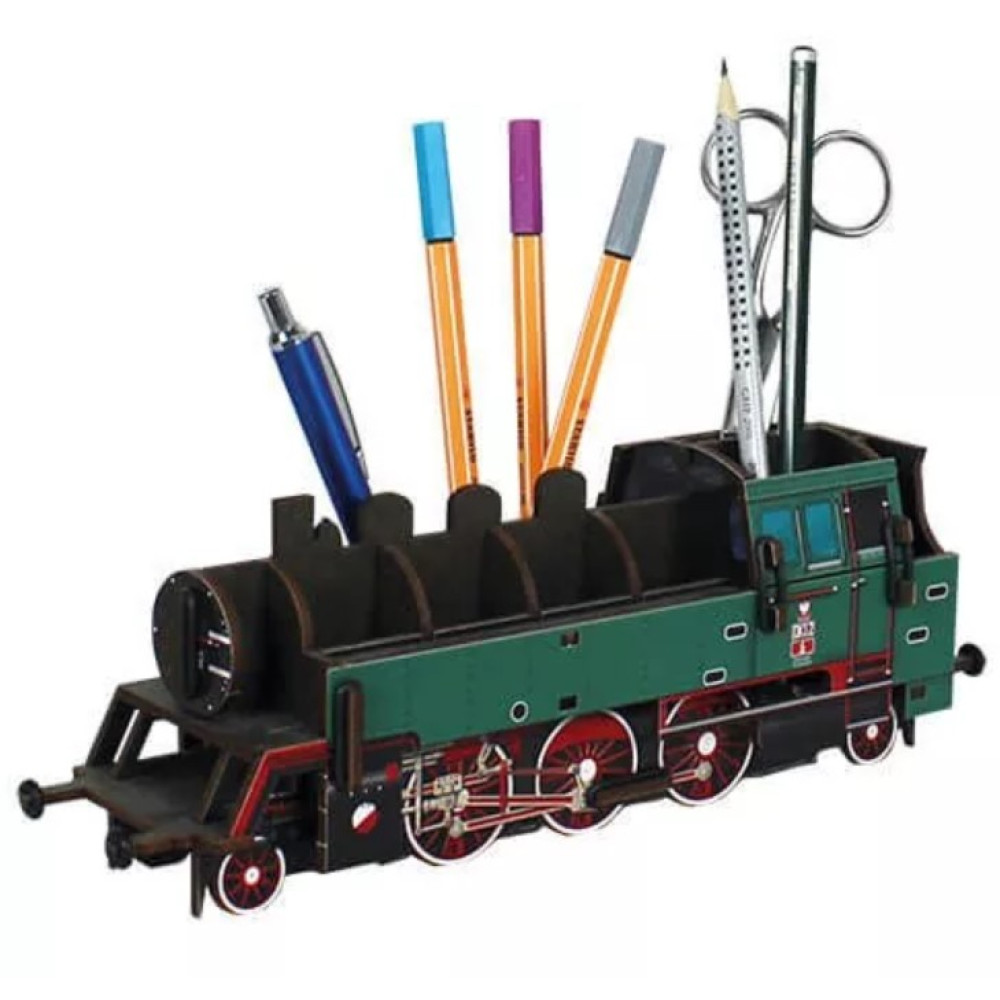 Bringen Sie Eisenbahnflair in ihr Büro, mit dieser Stiftebox als Nachbildung einer Dampflokomotive der Baureihe 64.