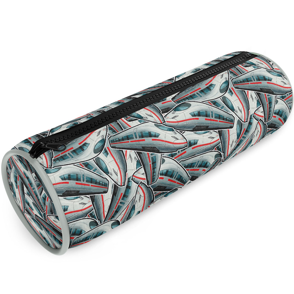 Ovale Federmappe mit ICE 3-Motive. Maße: 21x8x8cm Reißverschluss Aufdruck innen und außen Polyester..