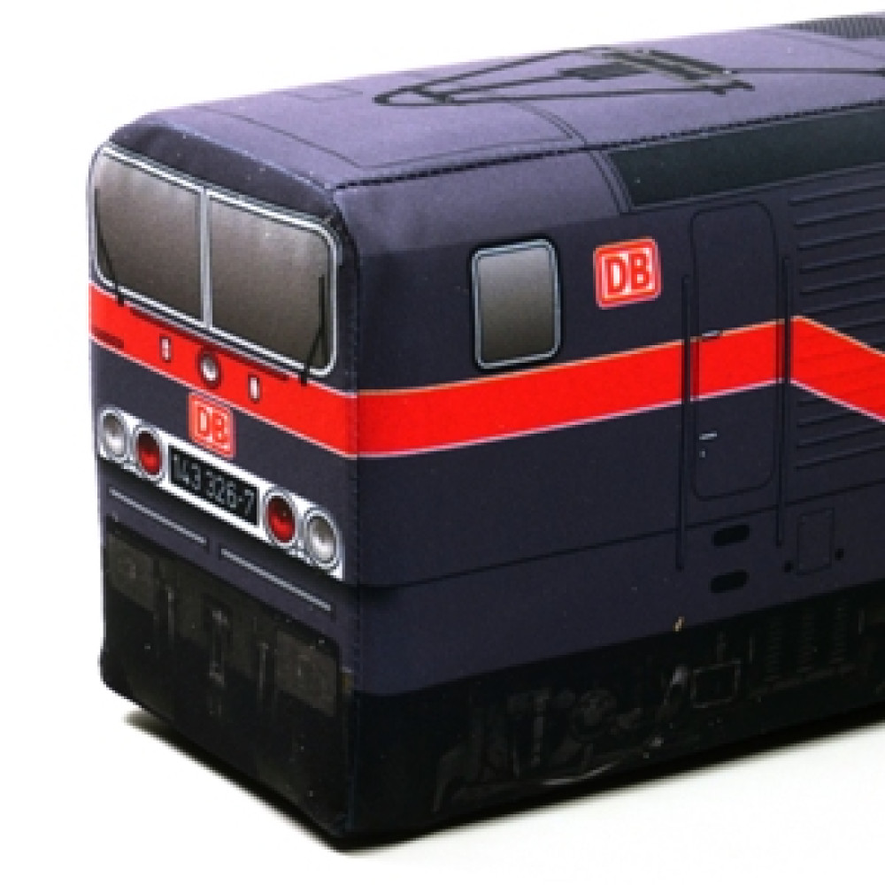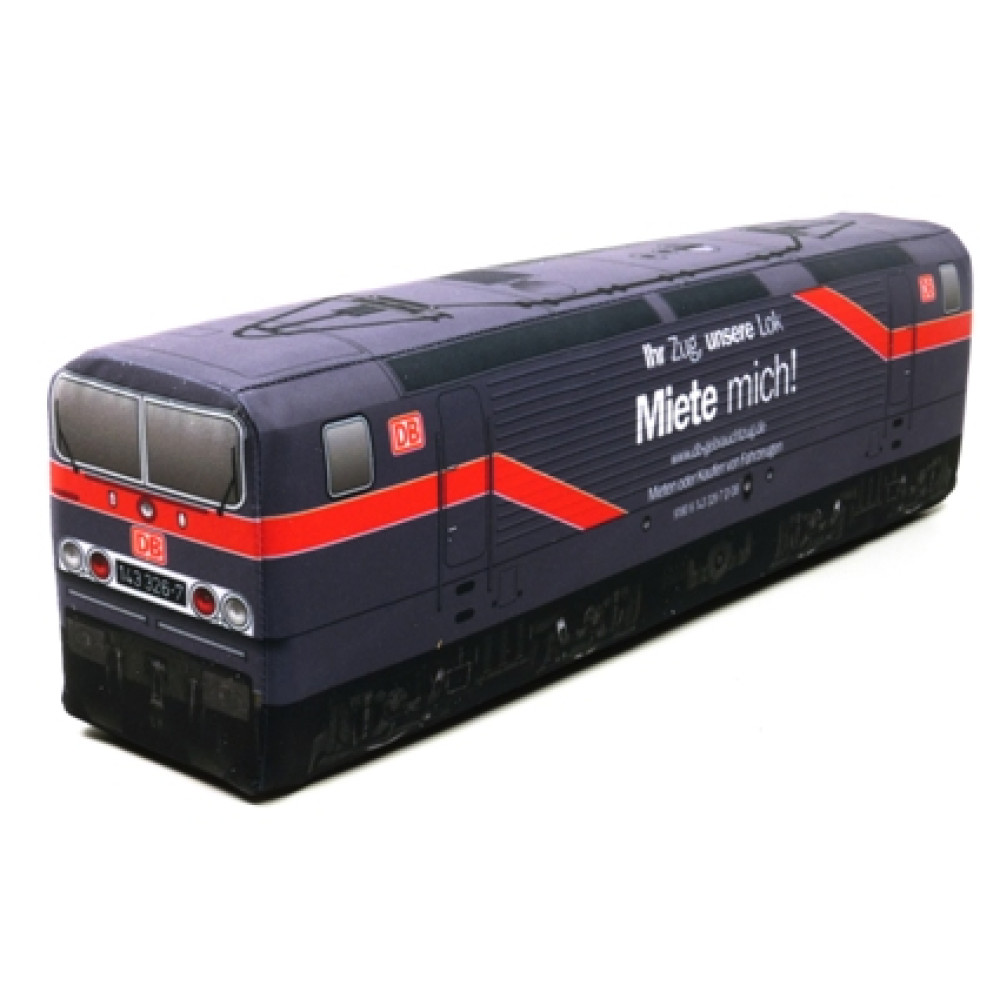 Plüschkissen / Dekorationskissen Nachbildung von: E-Lok Elektrolokomotive LEW „Lady“ DB 143 326-7 "Miete Mich" (ex DR-Baureihe 243/212) Maßstab: 1:37 Farbe: dunk..