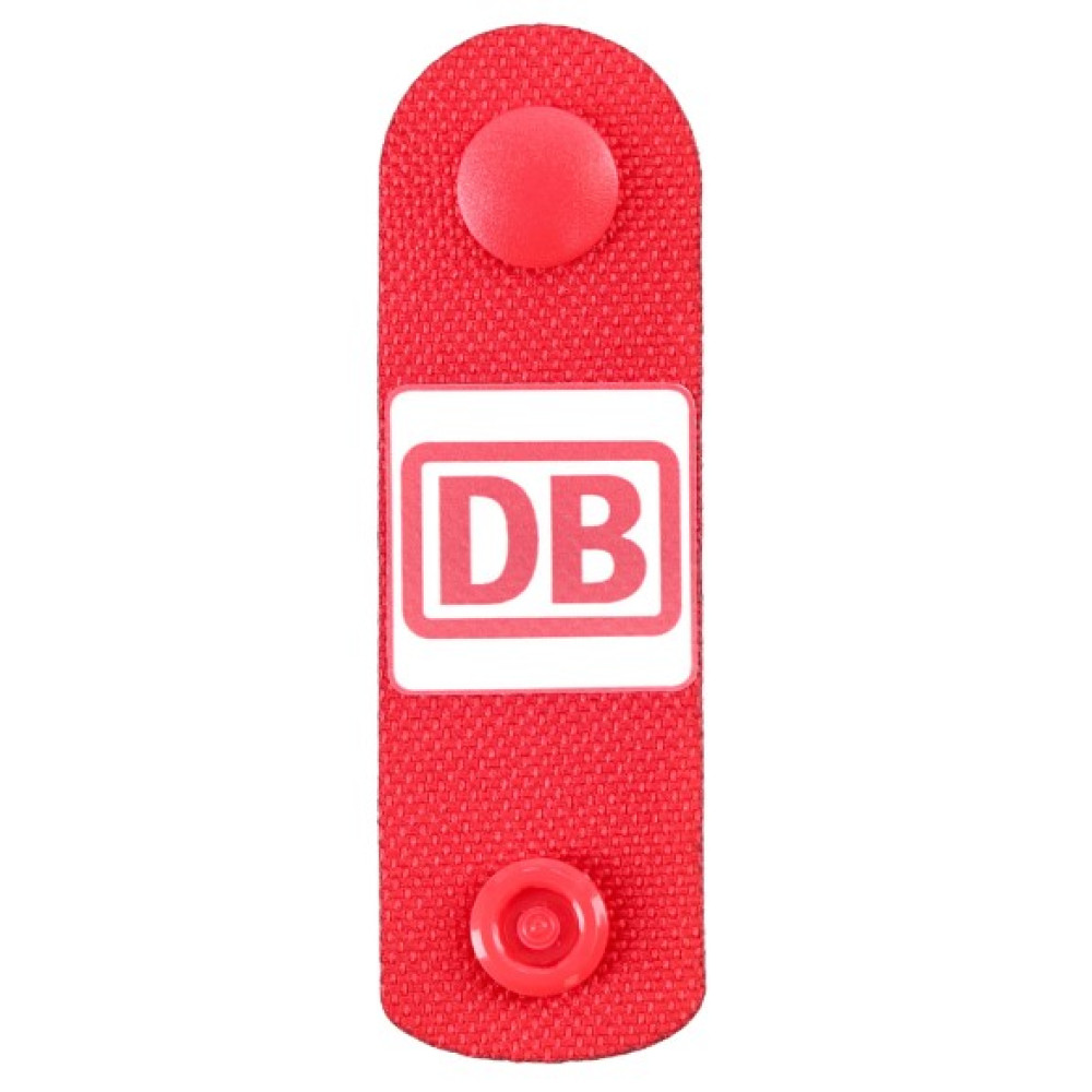 DB Logo auf roten Stoff mit Druckknopfverschluss (ABS-Kunststoff).