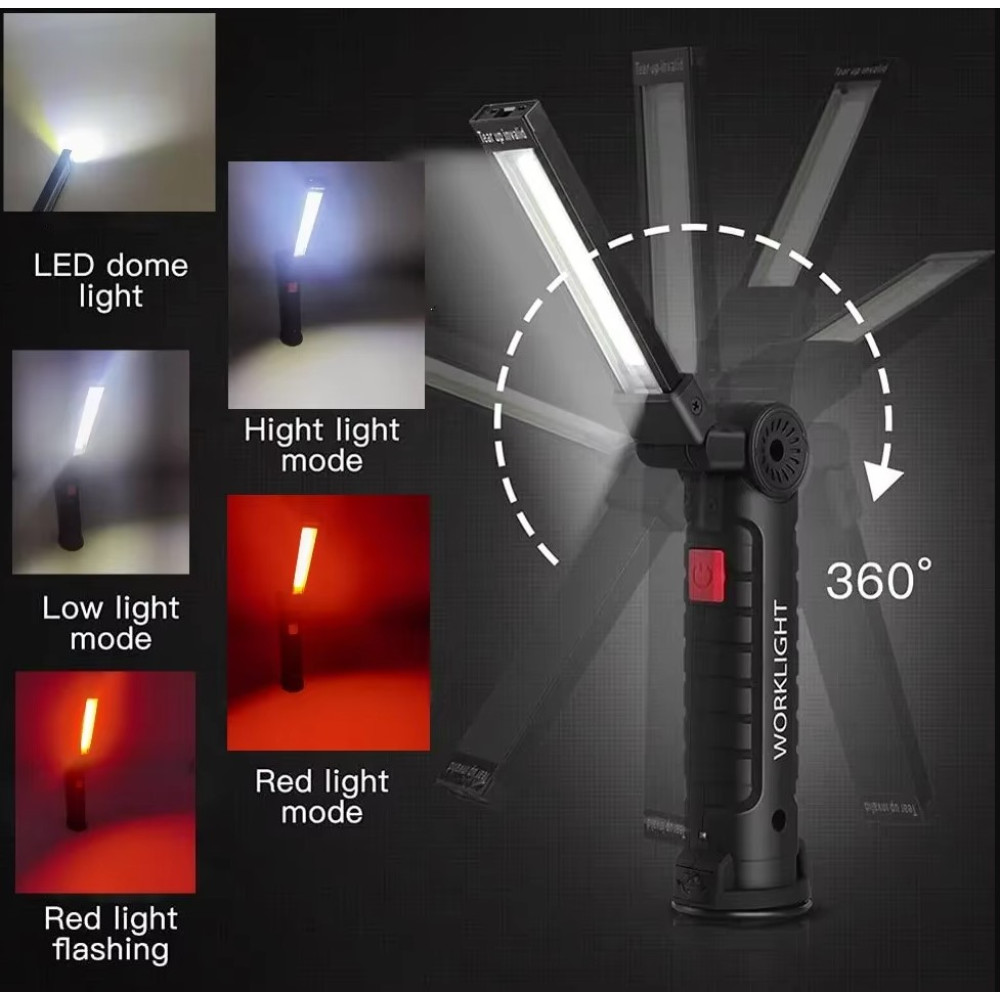 Taschenlampe S005-B knickbar drehbar Handleuchte LED Weiss / Rot abblendbar USB wiederaufladbar Powerbank magnetisch
