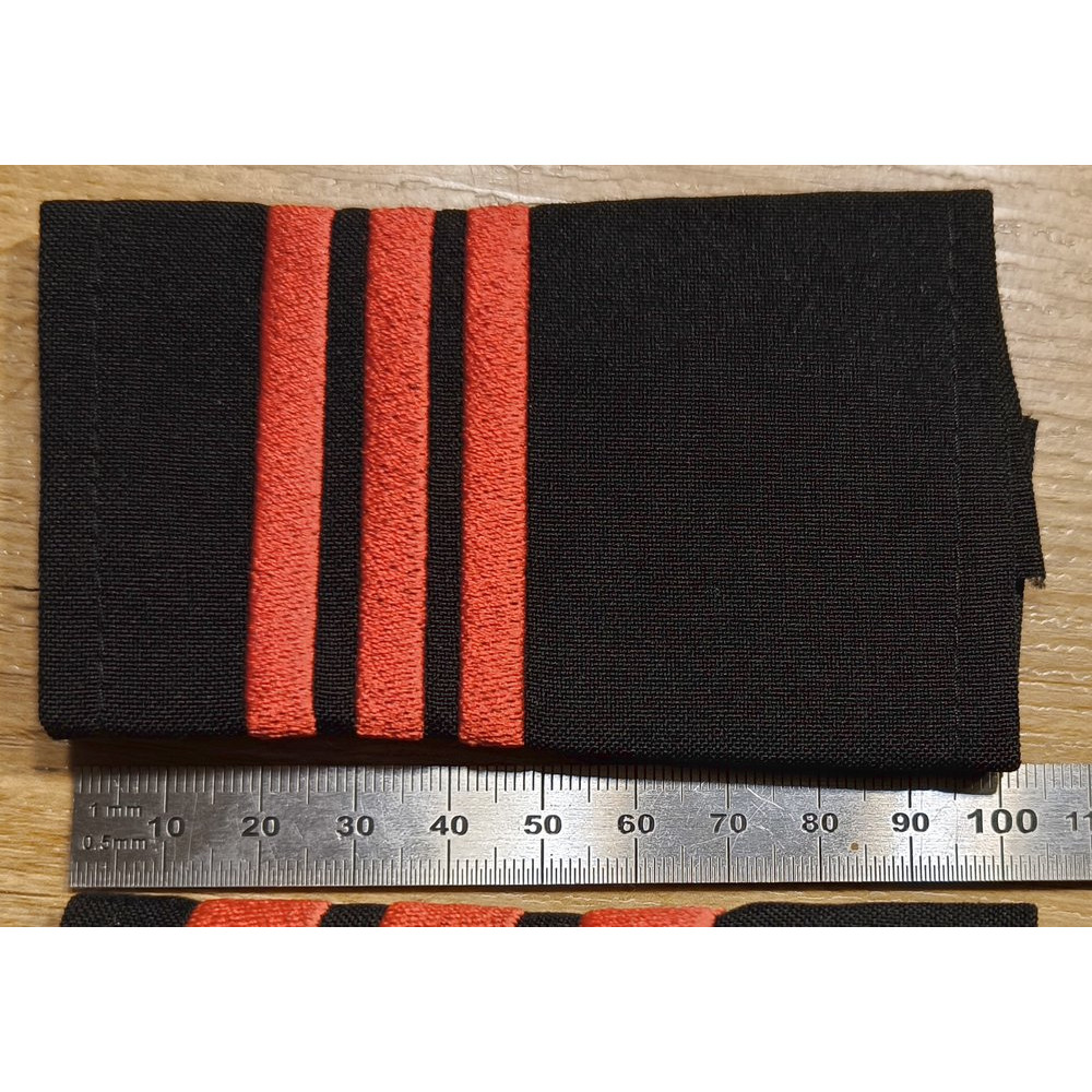 Schulterstücke mit Klett, klassische Schlauchform, Paar, 3 rote Balken, Lokführer Deutsche Bahn Maschinengestickt wahlweise konische oder rechteckige Form einste..